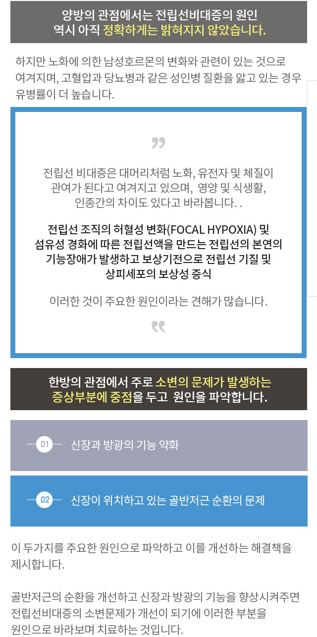 전립선질환 치료를 위한 세밀한 검진양방의 체계적인 검진에 한방의 임상 검진을 결합전립선의 상태와 신체 상태를 파악하여질환 발견시 치료의 방향을 결정