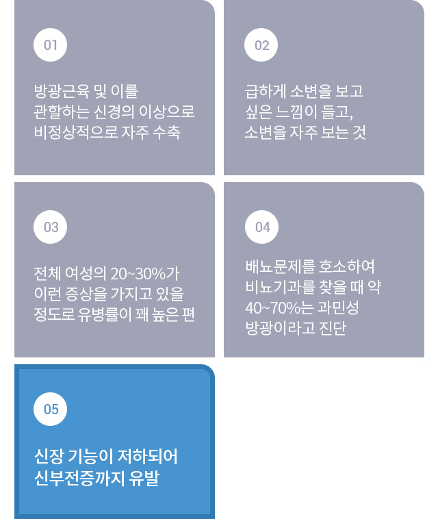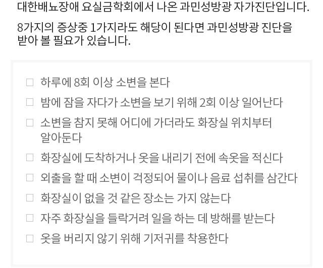 여성질환 > 과민성방광 여성질환 > 간질성방광 여성질환 > 만성방광염 여성질환 > 여성요도증후군 여성질환 > 요실금