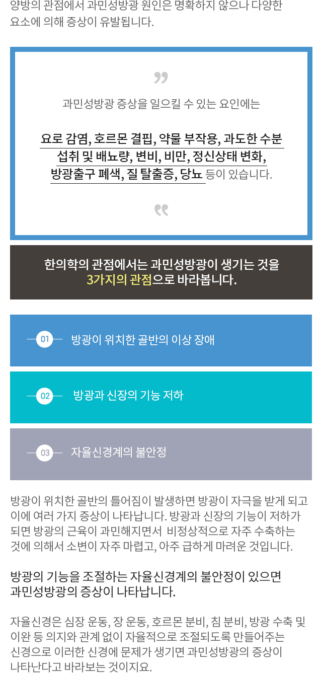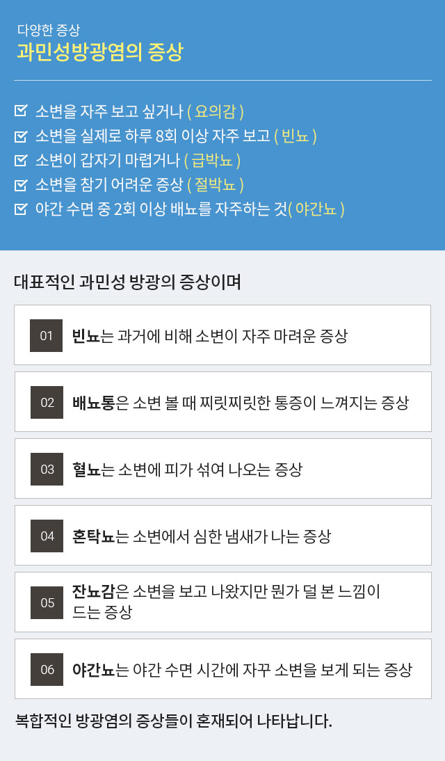 양방치료로 빈뇨, 소변통, 야뇨,급박뇨등의 증상을 빠르게 해소골반의 구조적인 문제를 해결하여간질성 방광의 원인을 제거한방치료로 간질성 방광의 재발을 방지