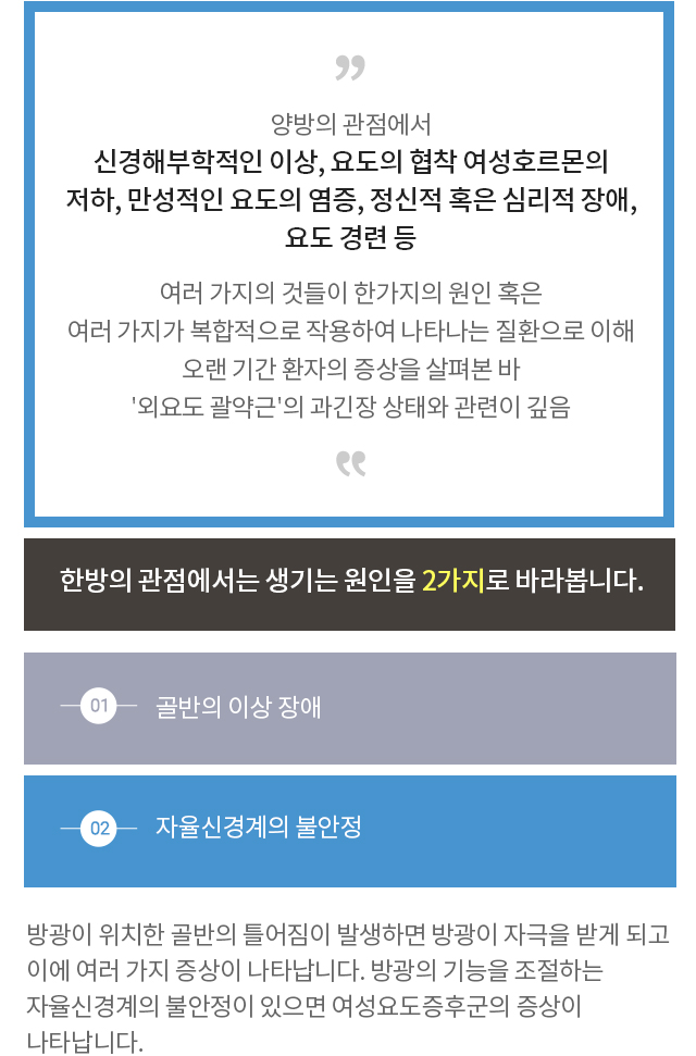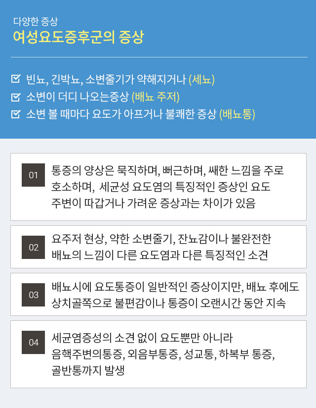 양방치료로 소변통의 증상을 빠르게 해소골반의 구조적인 문제를 해결하여요도 통증의 원인을 제거한방치료로 자율신경계를 안정시키고요도 통증의 재발을 방지