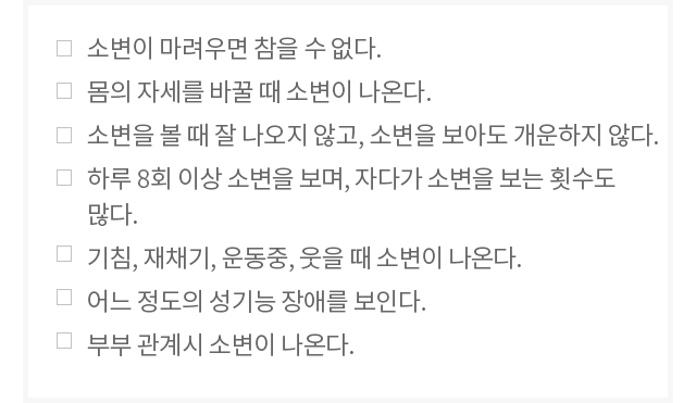 여성질환 > 과민성방광 여성질환 > 간질성방광 여성질환 > 만성방광염 여성질환 > 여성요도증후군 여성질환 > 요실금
